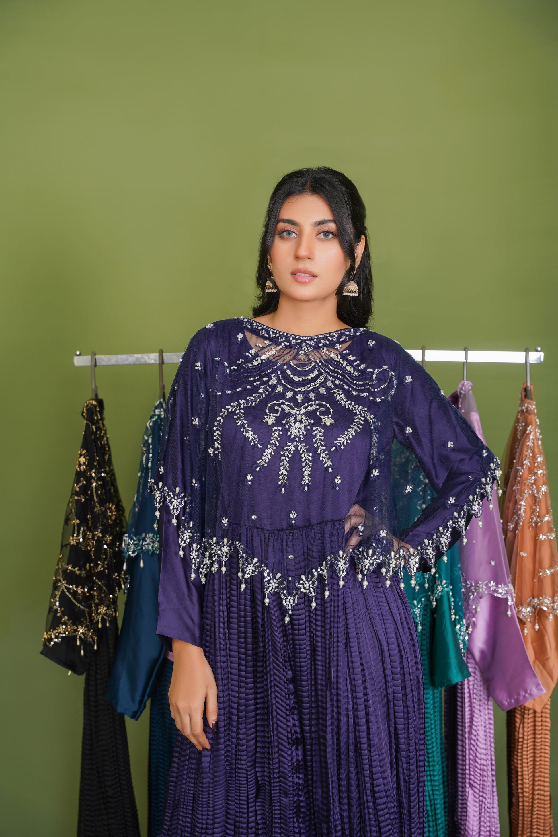 Design: Stunning Zari Dabka, Pearl, Sequence etc work enhances the cape with intricate detailing.